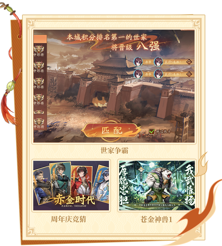 对敌方前排造成巨量苍御物理伤害,恢复【花灵】巨额血量。 自身获得若干【将力值】和【战团值】。